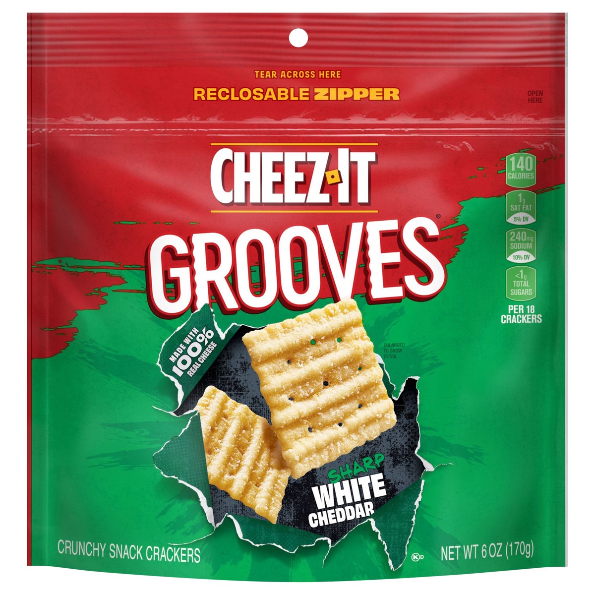 Make snack time more satisfying with the bold flavor and big crunch of Cheez-It Grooves White Cheddar. Each cracker features a bold hit of white cheddar cheese and crunchy ridges for an enjoyable pick…