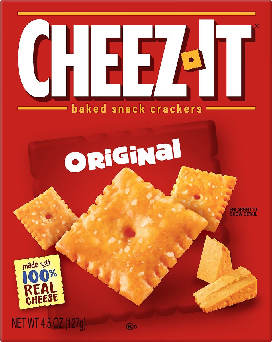 Made with 100% real cheese! Enjoy a handful. Essential TV snacking. Cheez-It.com. Visit: cheez-it.com. Call 1-877-453-5837.