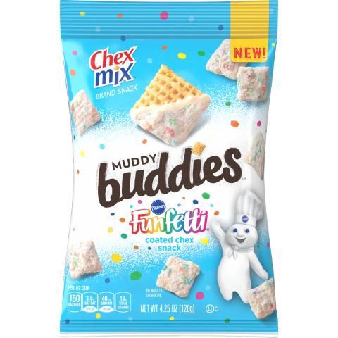 Chex Mix Muddy Buddies feature crispy corn Chex pieces in a Funfetti dust with a delightful powdery smooth finish Sweet treats for anytime