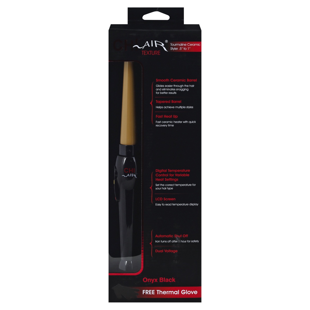 CHI Air Texture Tourmaline Ceramic Styler instantly creates fashionable curls with no creases or lines! This clamp-free tapered styling iron utilizes the latest Tourmaline Ceramic technology to reduceā¦