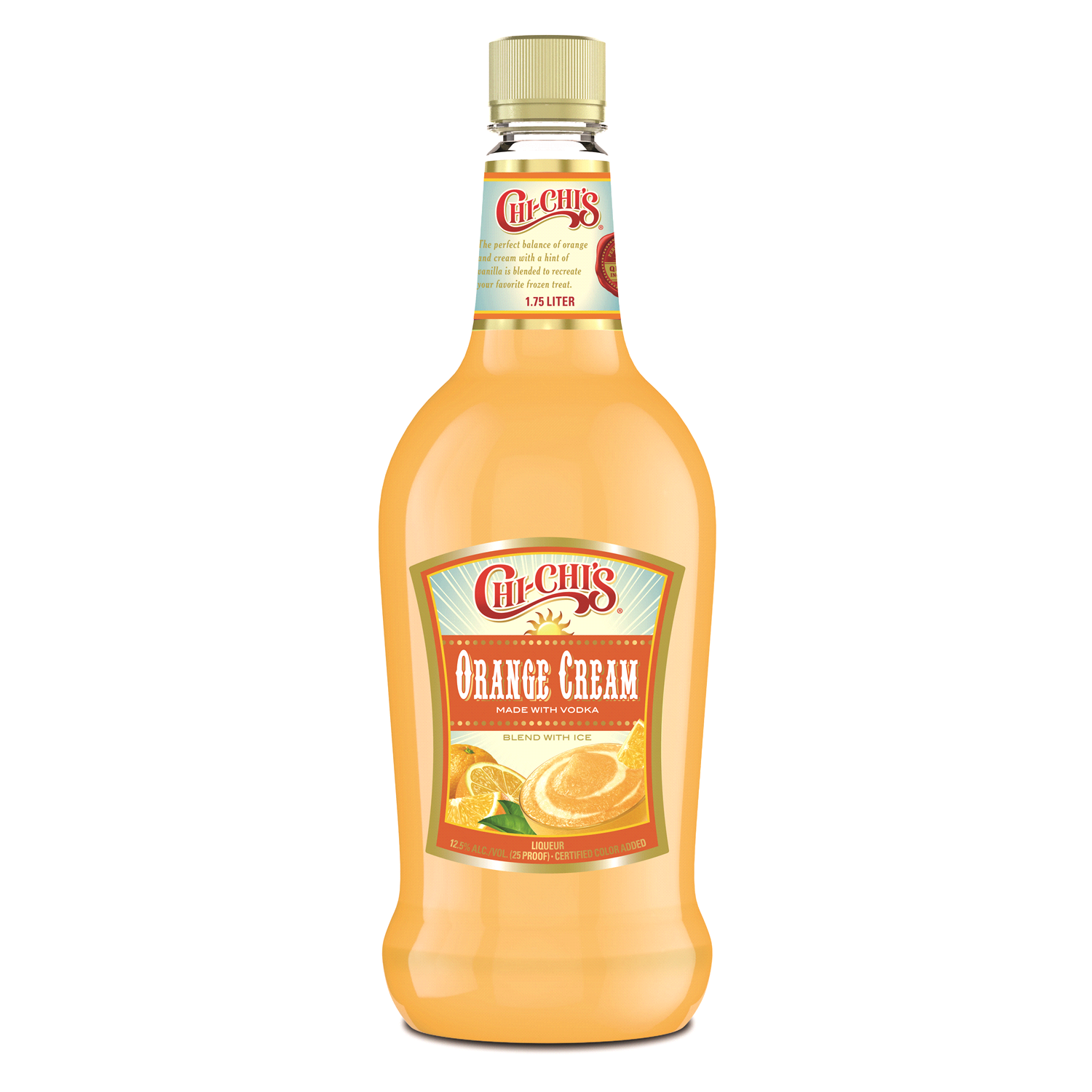 Made with vodka. The perfect balance of orange and cream with a hint of vanilla is blended to recreate your favorite frozen treat. Certified color added. Bring home the taste you know and love with Ch…