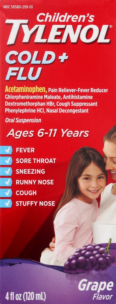 In Each 5 ml: Active Ingredients: Acetaminophen (160 mg), Pain Reliever/Fever Reducer; Chlorpheniramine Maleate (1 mg), Antihistamine; Dextromethorphan HBr (5 mg), Cough Suppressant; Phenylephrine HCl…
