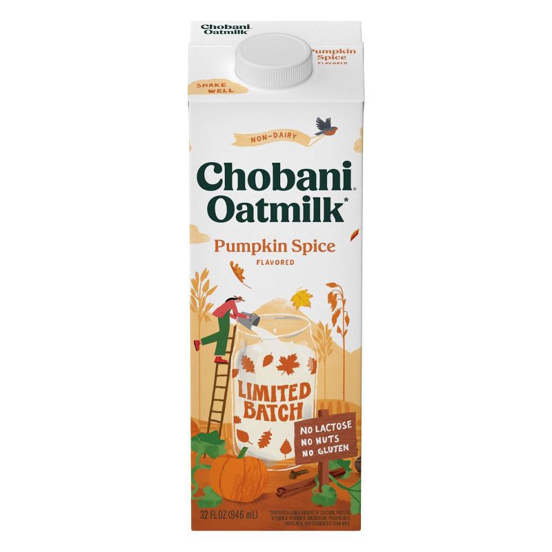 Chobani Oatmilk is made with the simple goodness of oats. Plant-based and vegan-friendly\, non-dairy oatmilks are a good source of calcium and vitamins A and D. Rich and creamy oatmilk in a festive ho…