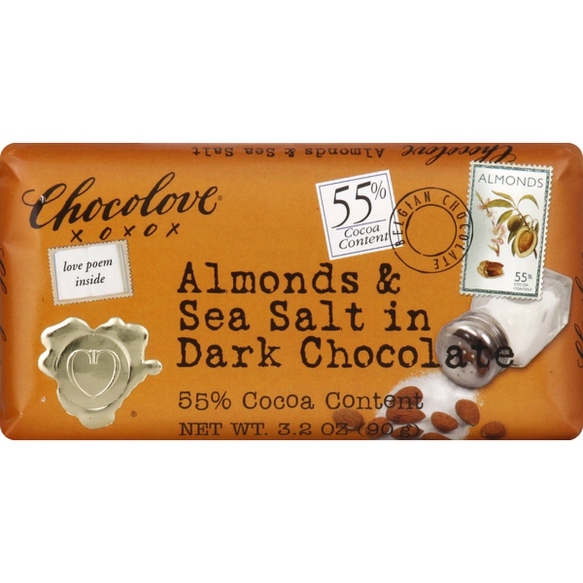 Chocolove Dark Chocolate, Almonds & Sea Salt, 55% Cocoa