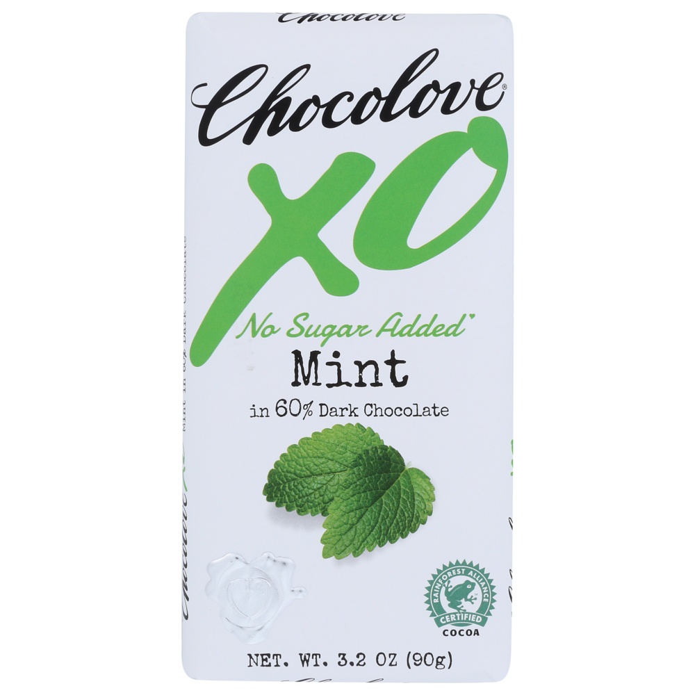 slide 1 of 1, Chocolove XO Mint Dark Chocolate No Sugar Added, 3.2 oz