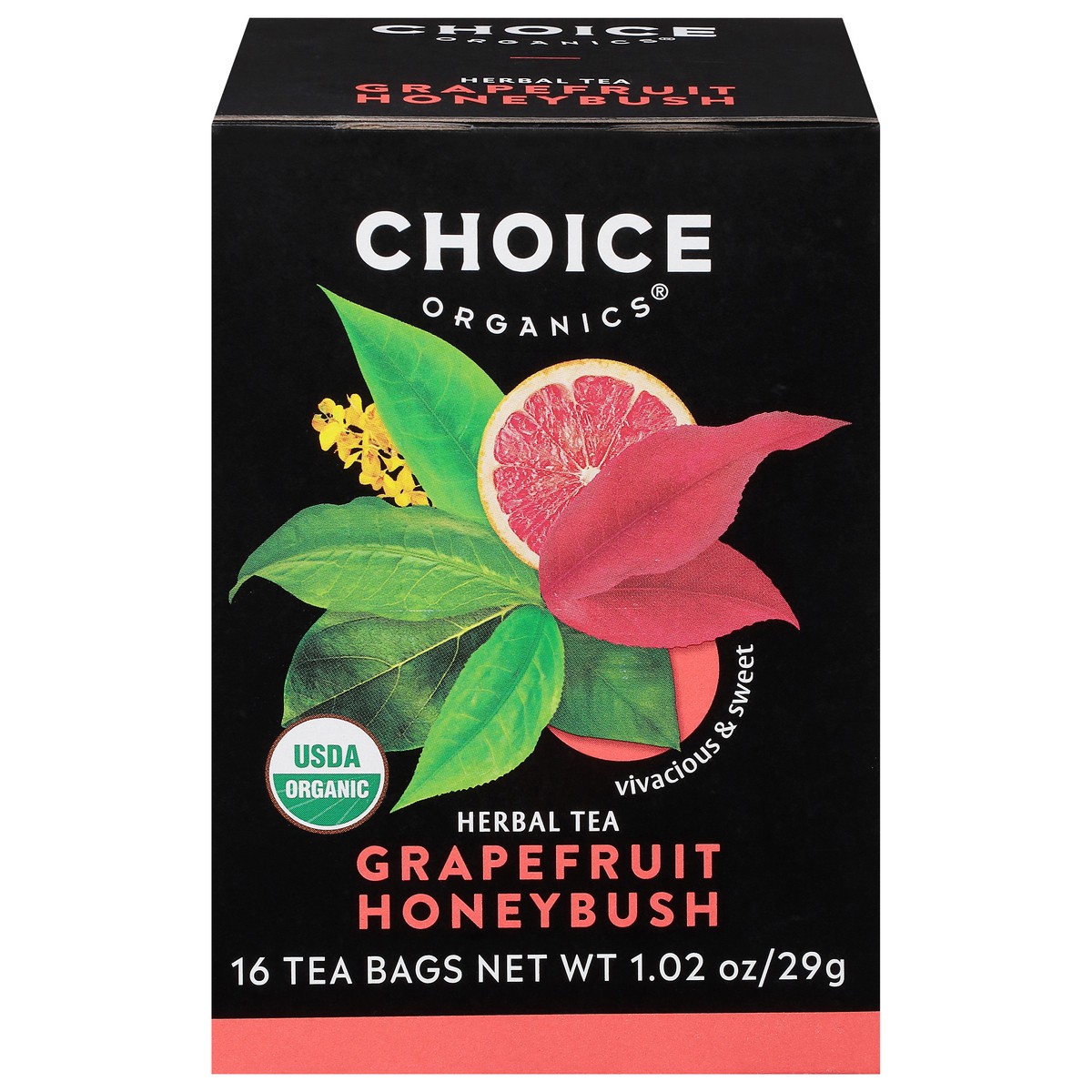 Choice Organics Tea Grapefruit Honeybush is a lively herbal tea with a sweet, lightly floral aroma that pairs perfectly with the subtly tart bite of grapefruit peel. Caffeine-free, our medium-bodied G…