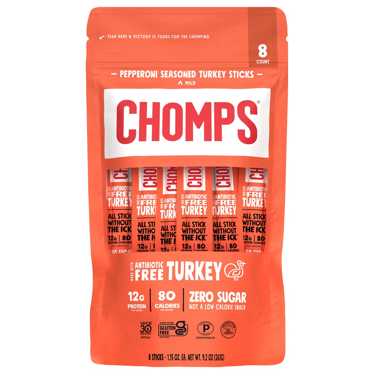 Introducing Pepperoni Turkey! Chomps Pepperoni Turkey sticks add that burst of flavor you're looking for wihtout the guilt! Each stick is filled with a blend of spices including chili pepper, fennel s…