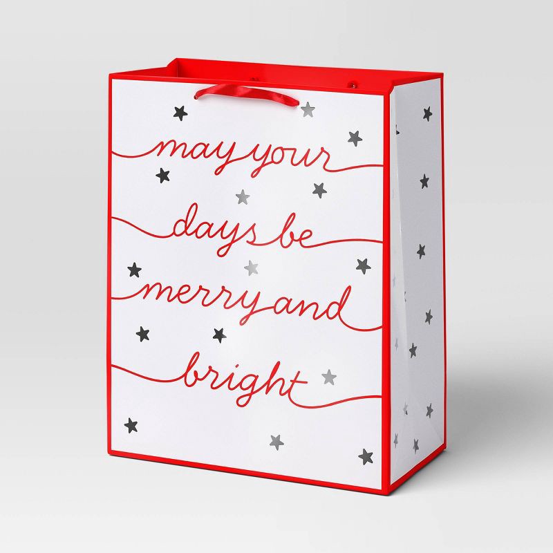 Spread joy in festive style by presenting your holiday gifts in this Christmas Candy Cane Wishes Merry and Bright XL Cub Gift Bag from Wondershop™. Great for handing out various gifts, this paper gift…