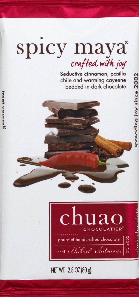 Crafted with joy. Seductive cinnamon, Pasilla chile and warning cayenne bedded in dark chocolate. Gourmet handcrafted chocolate. Chef: Michael Antonorsi. Est. 2002. Spreading joy since 2002. Treat you…