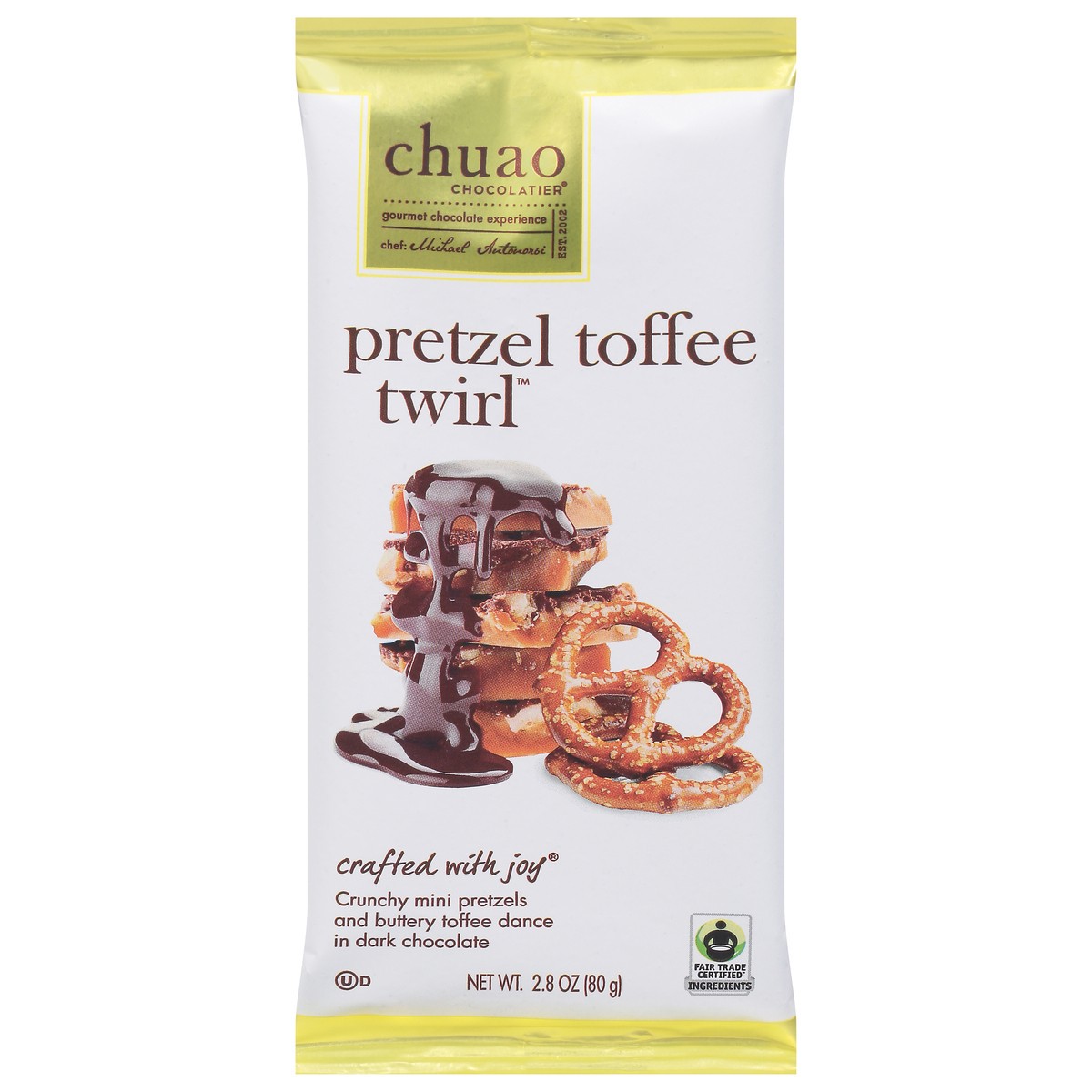 do your happy dance. we thought getting swept off your feet & spun around only happened in the movies… until we tasted pretzel toffee twirl. crunchy pretzels, buttery toffee and rich dark chocolate - …