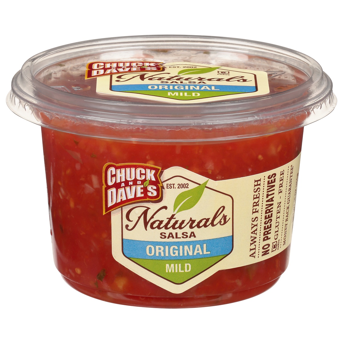 Tomatoes, Onions, Bell Peppers, Cilantro, Mild Yellow Peppers, Jalapeno Peppers, Fresh Garlic, Cider Vinegar, Lime Juice, Sugar, Salt, Spices, and Xanthan Gum.