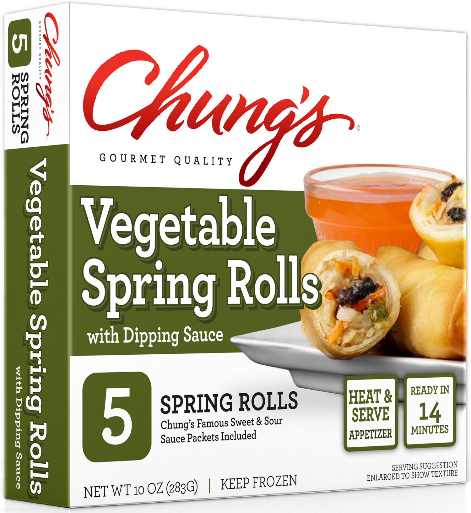 Gourmet quality. Chung's famous sweet & sour sauce packets included. Heat & serve appetizer. Ready in 14 minutes. For nearly 40 years, Chung's Gourmet Foods has been making delicious Asian cuisine and…