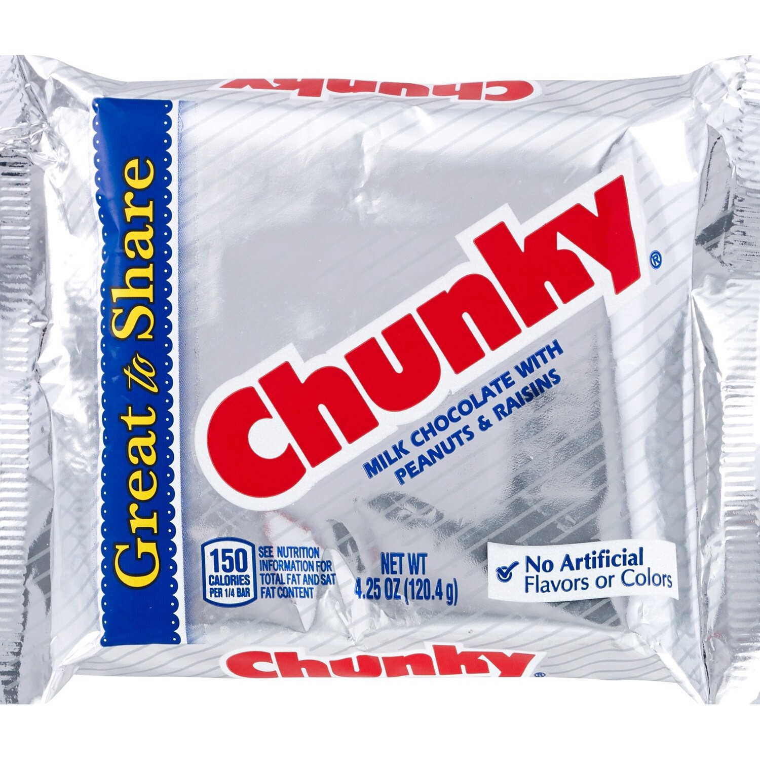 Original CHUNKY, known for its distinctive thick trapezoid shape, is made with rich, creamy Nestle Milk Chocolate with roasted peanuts and plump California raisins. This chocolate will bring back fond…