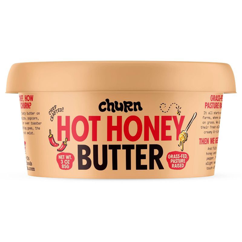 It all starts on small farms, where cows munch on grass. We slow-churn their fresh milk into the creamy & rich butter you see before you. Then, we get a bit chef-y and fold in hot honey and cayenne pe…