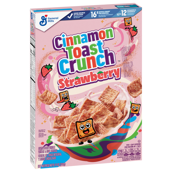 Get an epic start with Cinnamon Toast Crunch Strawberry, flavored with other natural flavors. Every crispy cereal square has a cinnamon swirl and is infused with the taste of strawberries and blasted …