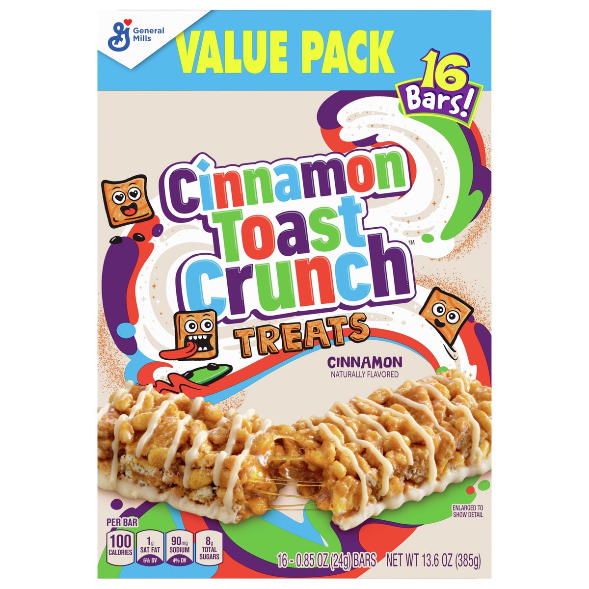 You don’t always need a bowl to crunch into your favorite Cinnadust-blasted cereal. Crunch around the clock with Cinnamon Toast Crunch Cereal Bars! Made with our crunchy squares, ooey gooey icing & sw…