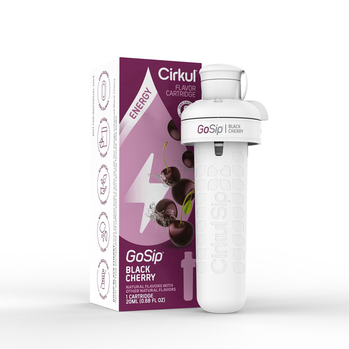 Give your taste buds a wake-up call. Our energy-enhanced Black Cherry flavor will keep you hydrated and caffeinated so you can stay focused and awake. This GoSip Cirkul flavor cartridge is enhanced wi…