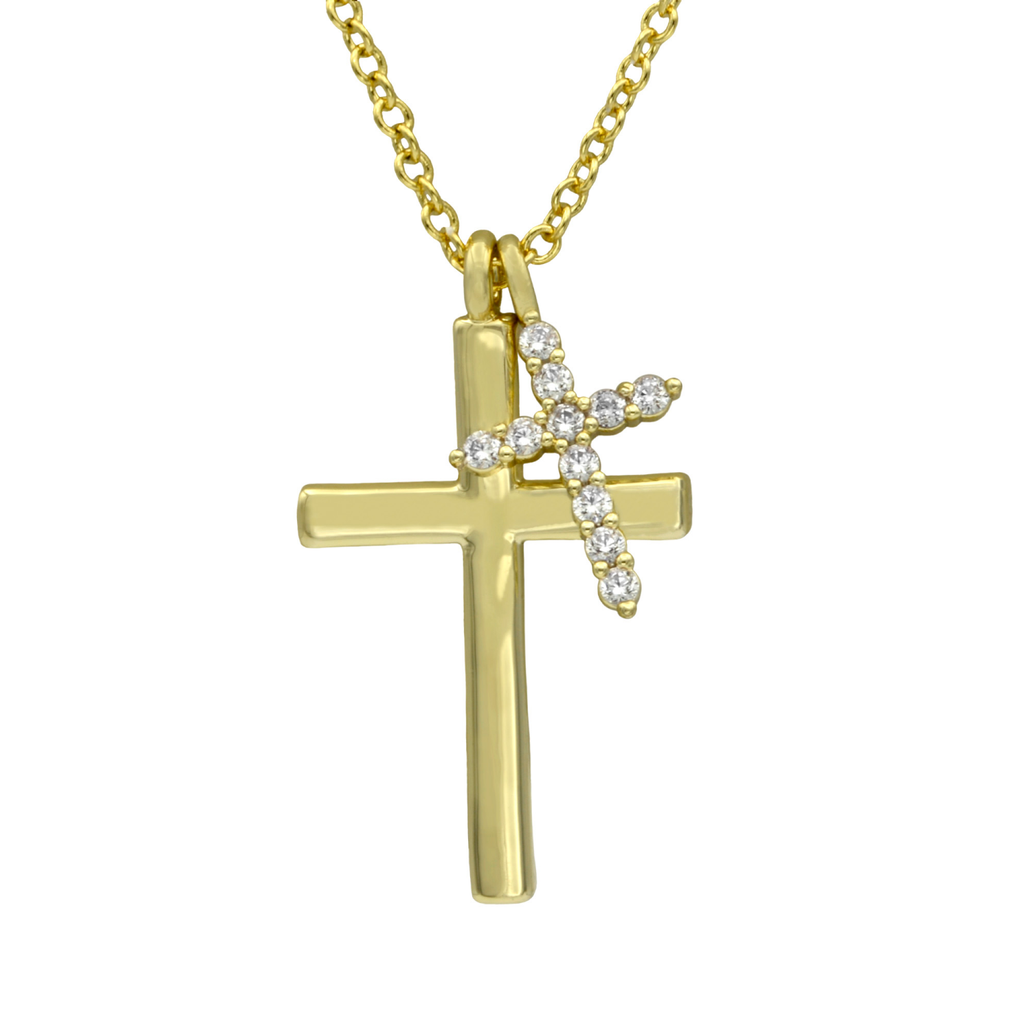 City by City Gold Pave Double Cross Pendant With Cubic Zirconia