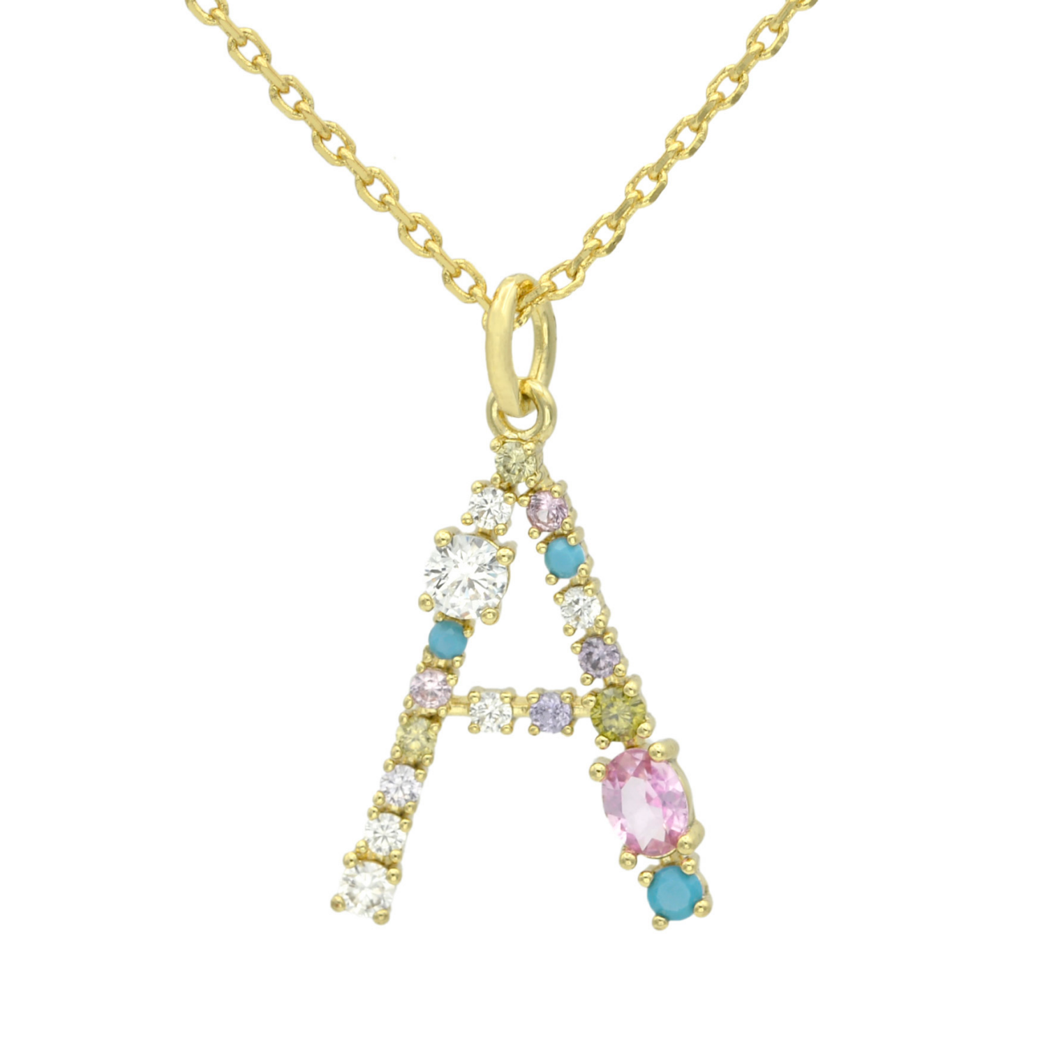 slide 1 of 1, City By City Multi Colored Initial Pendants, Multi With Cubic Zirconia A, One Size