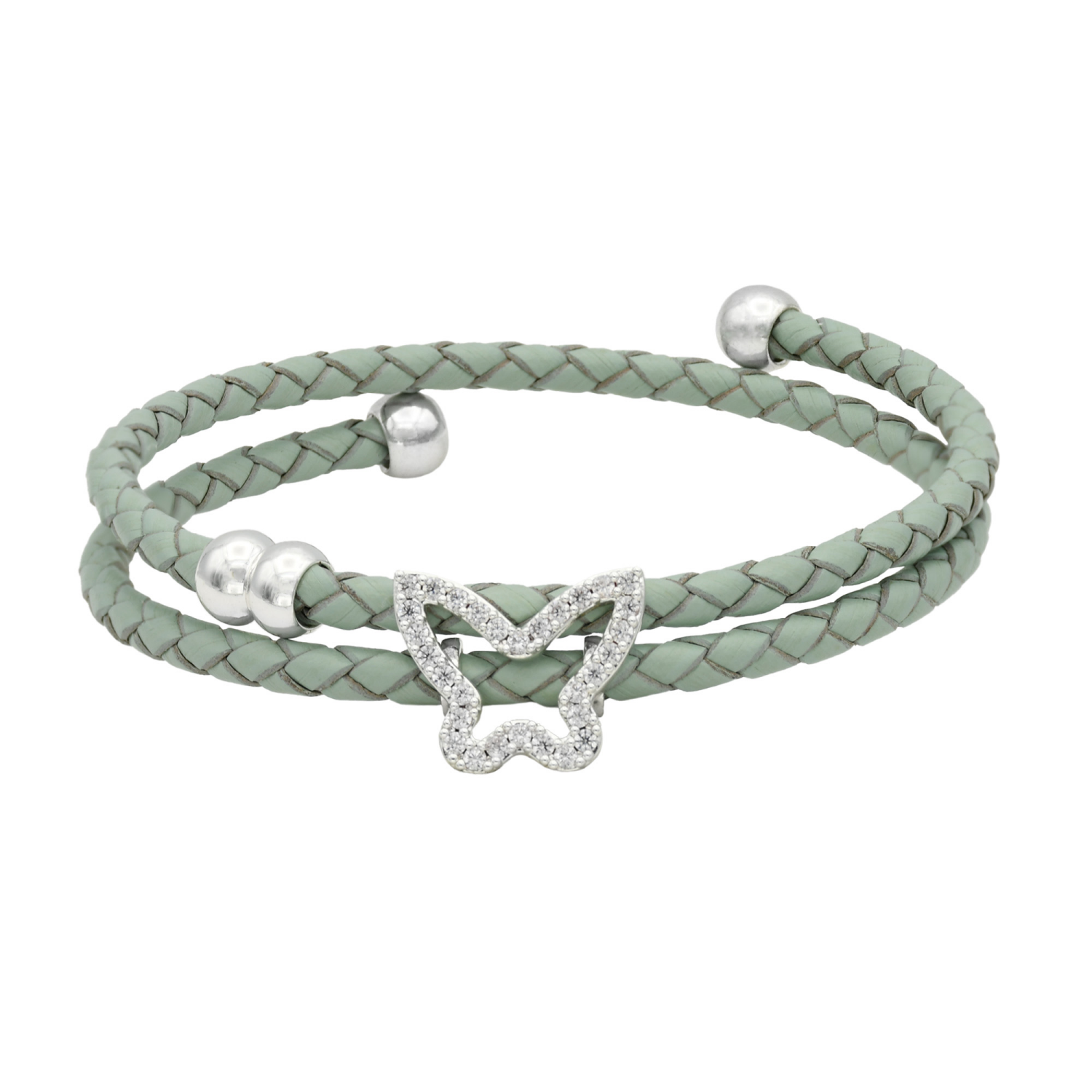 City by City Silver Pave Butterfly Leather Wrap Bracelet With Cubic Zirconia