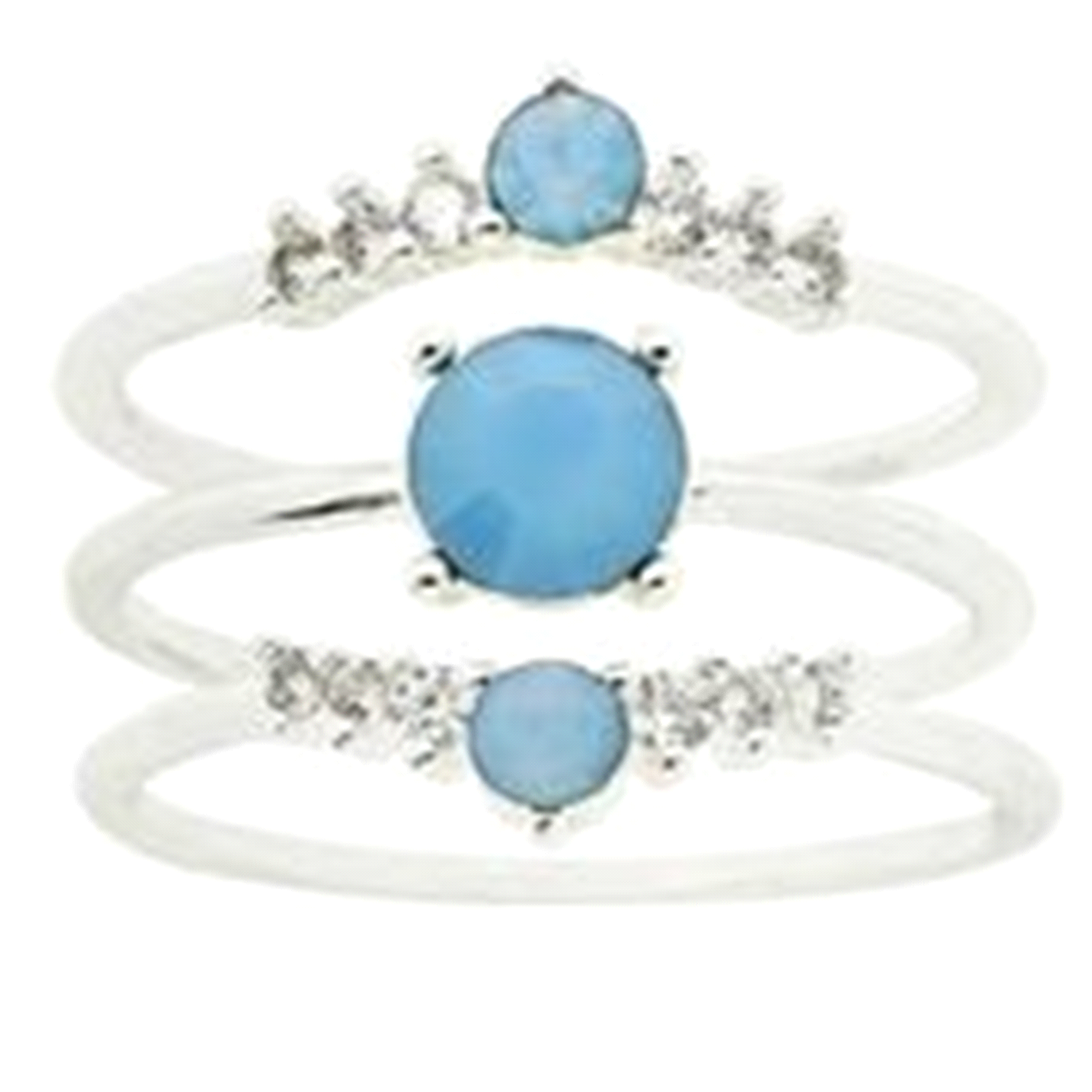 City by City Silver Tone 3 Opal Stone Cubic Zirconia 3 Band Ring Set in Size 7
