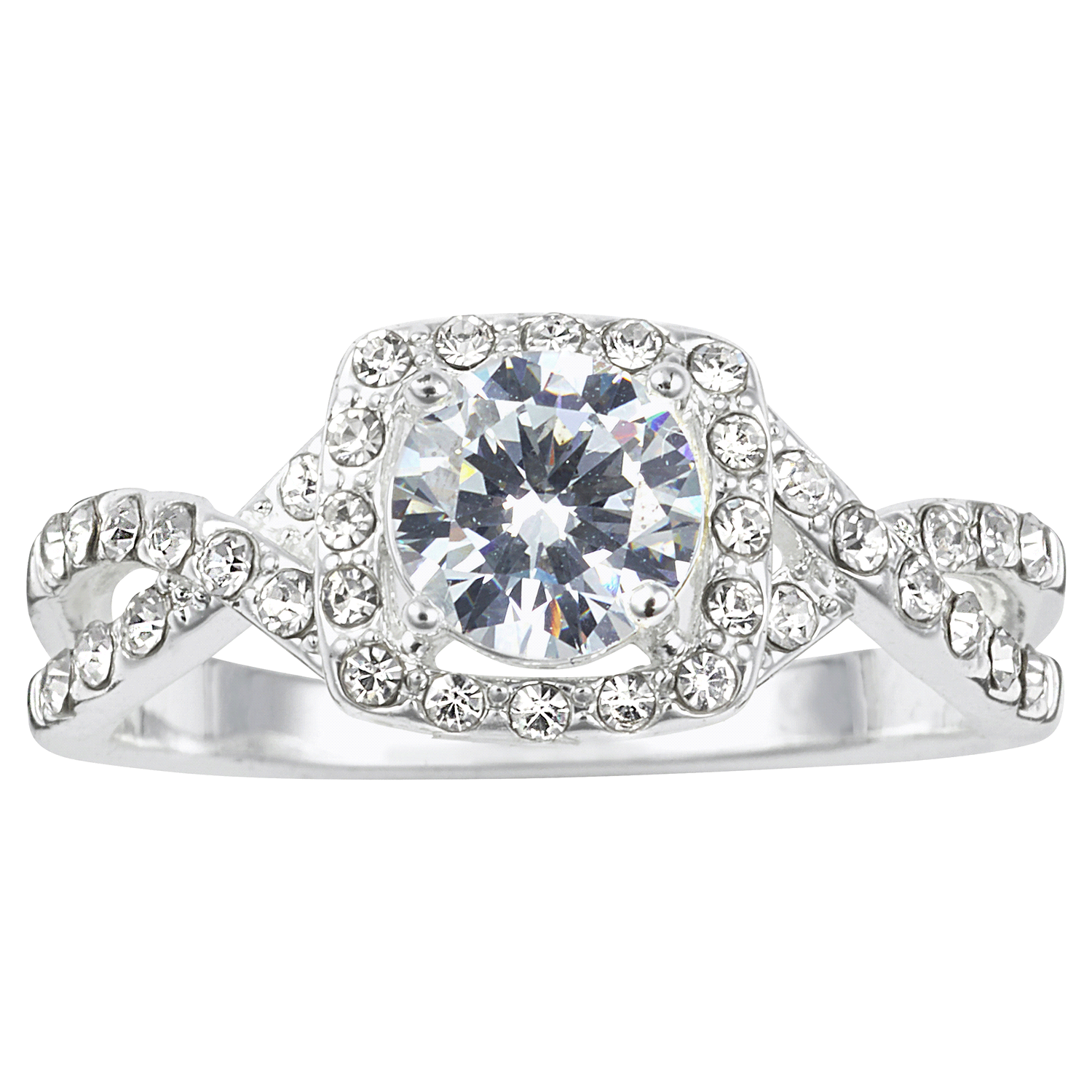 City by City Silver Tone Cubic Zirconia Solitaire Ring with Pave Halo Twist Band in Size 7