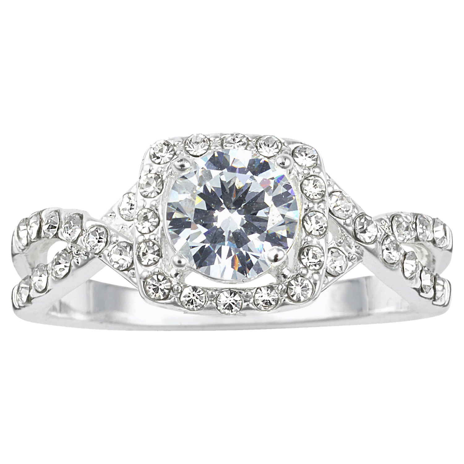City by City Silver Tone Cubic Zirconia Solitaire Ring with Pave Halo Twist Band in Size 9
