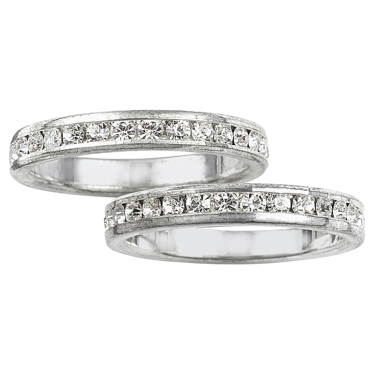 No need to choose Wear only one or wear them together. These two rings are channel set with clear crystal stones. Sold in a box for easy gift giving.