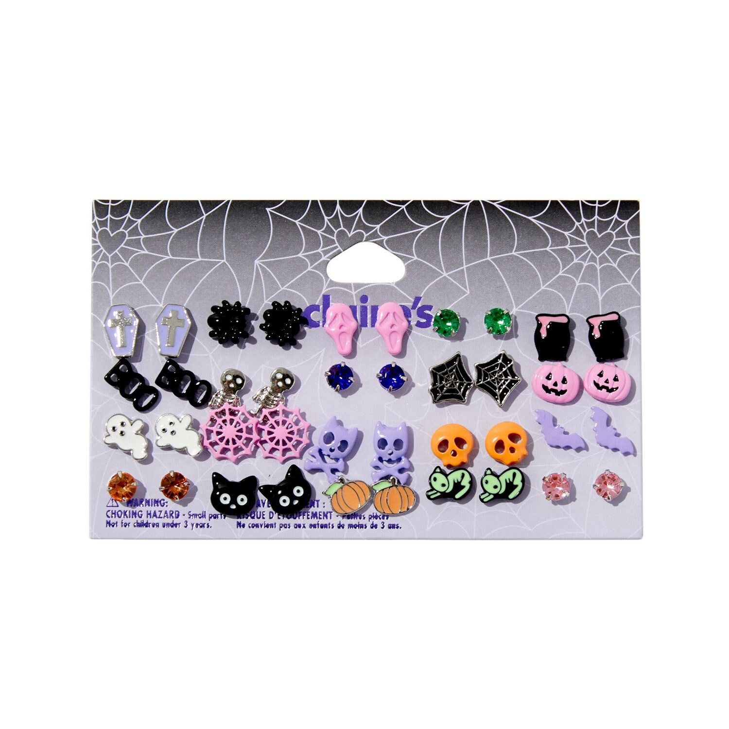 Elevate your Halloween style with this pack of 20 unique earrings, each featuring spooky designs that will add a touch of eerie charm to your seasonal look. Variety of Spooky Designs: This set include…