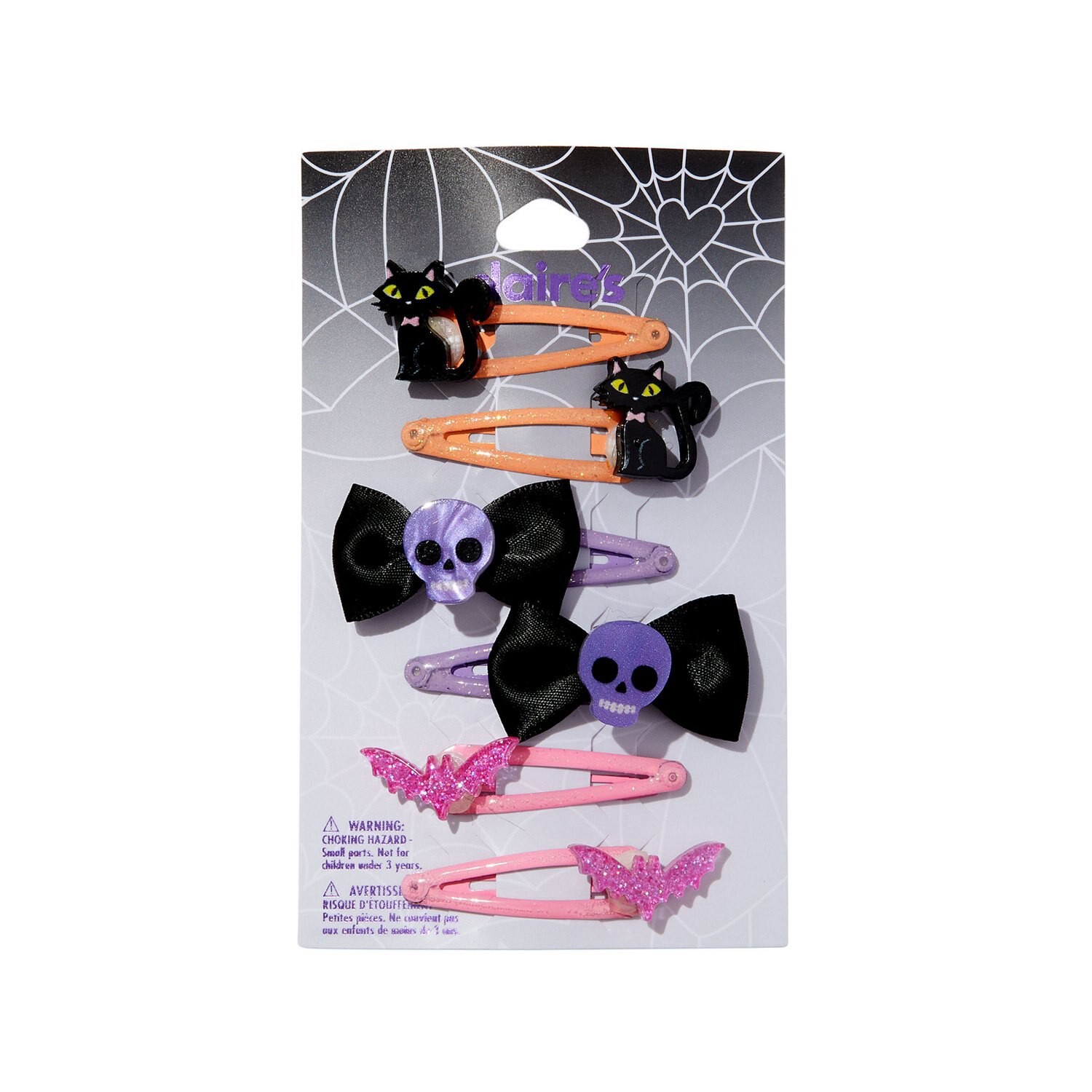 Get swept up in the Halloween spirit with these brightly colored hair clips – perfect for adding a touch of spooky style to your Halloween hairdo! Creepy Chic: The bright pink, orange and purple hair …