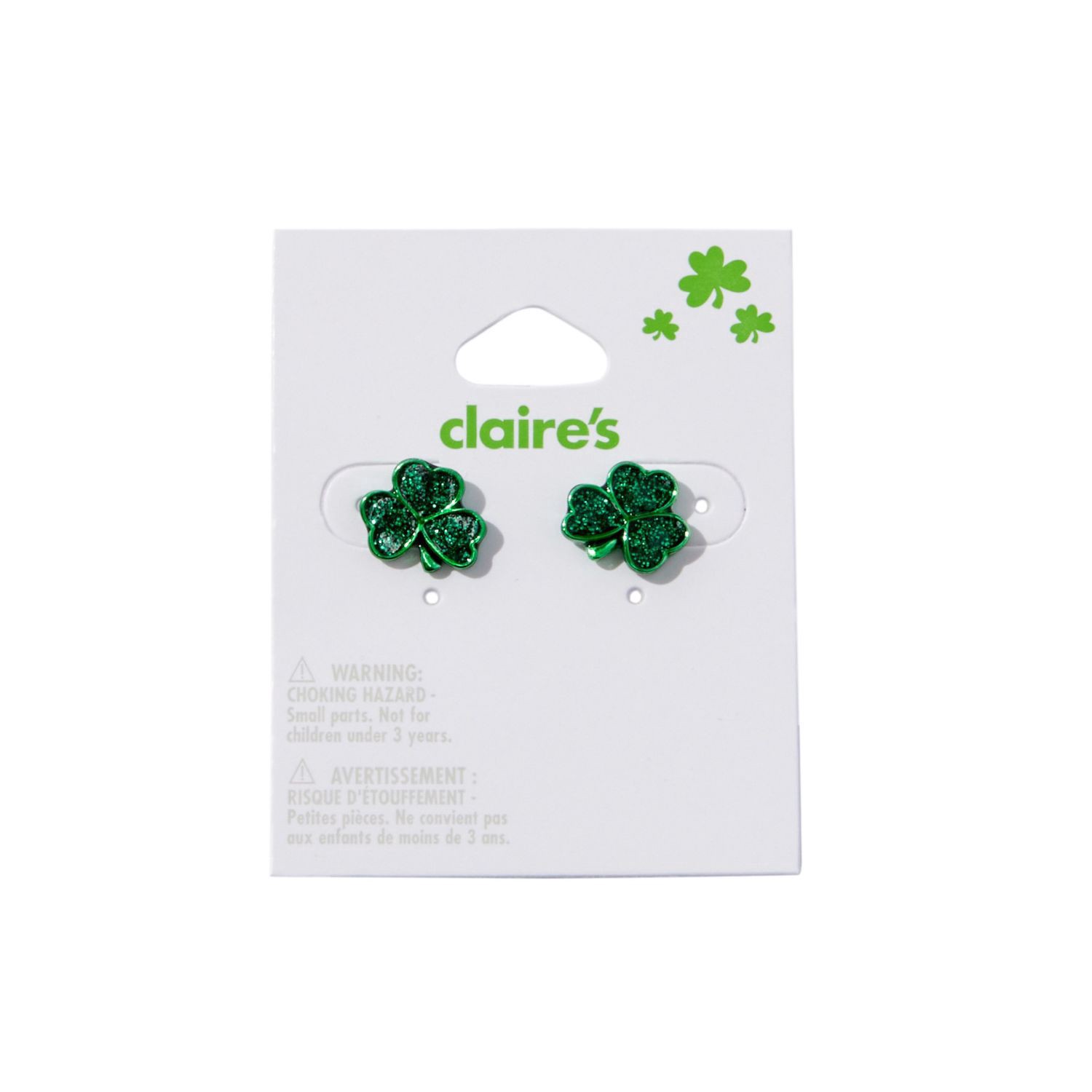 CLAIRES GRN GLTR SHMAROCK EARRINGS
