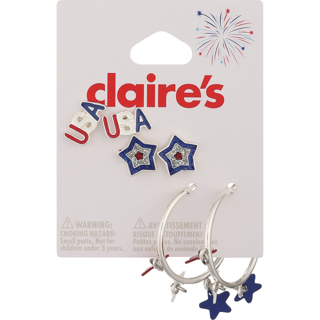 slide 1 of 1, Claire's Star Earrings, 3 Pk, 1 ct