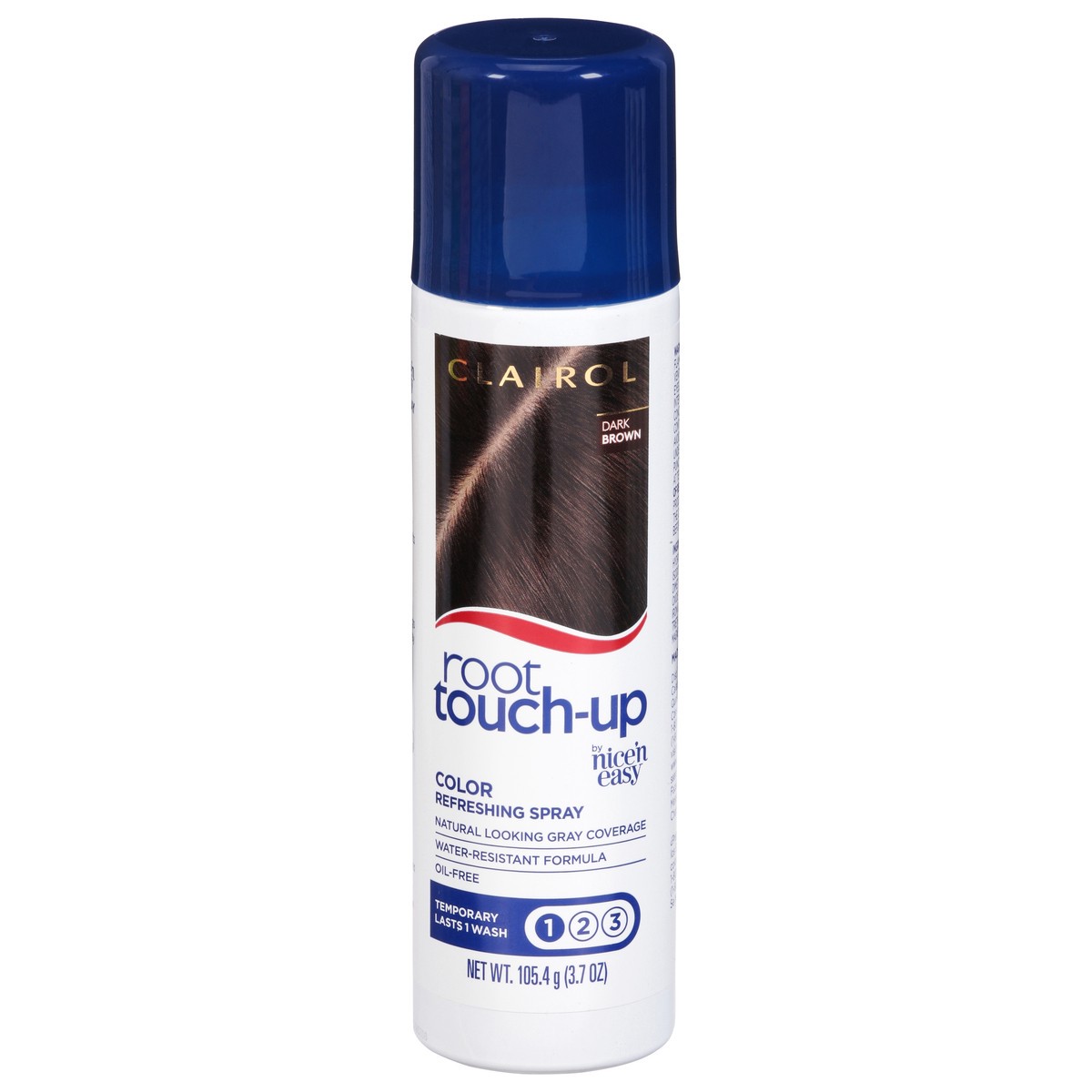 Spray away grays in seconds! Clairol Root Touch-Up Temporary Refreshing Color Spray extends the life of your color. Its natural-looking, water-resistant gray coverage that lasts until your next shampo…