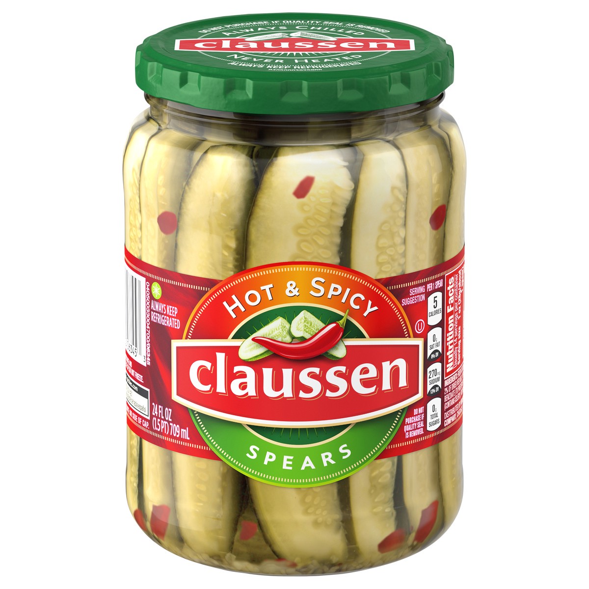 For a flavorful, crunchy and zesty kick, try Claussen Hot & Spicy Pickle Spears. Our Claussen pickle spears are crafted with fresh cucumbers picked straight from the vine and refrigerated for our clas…