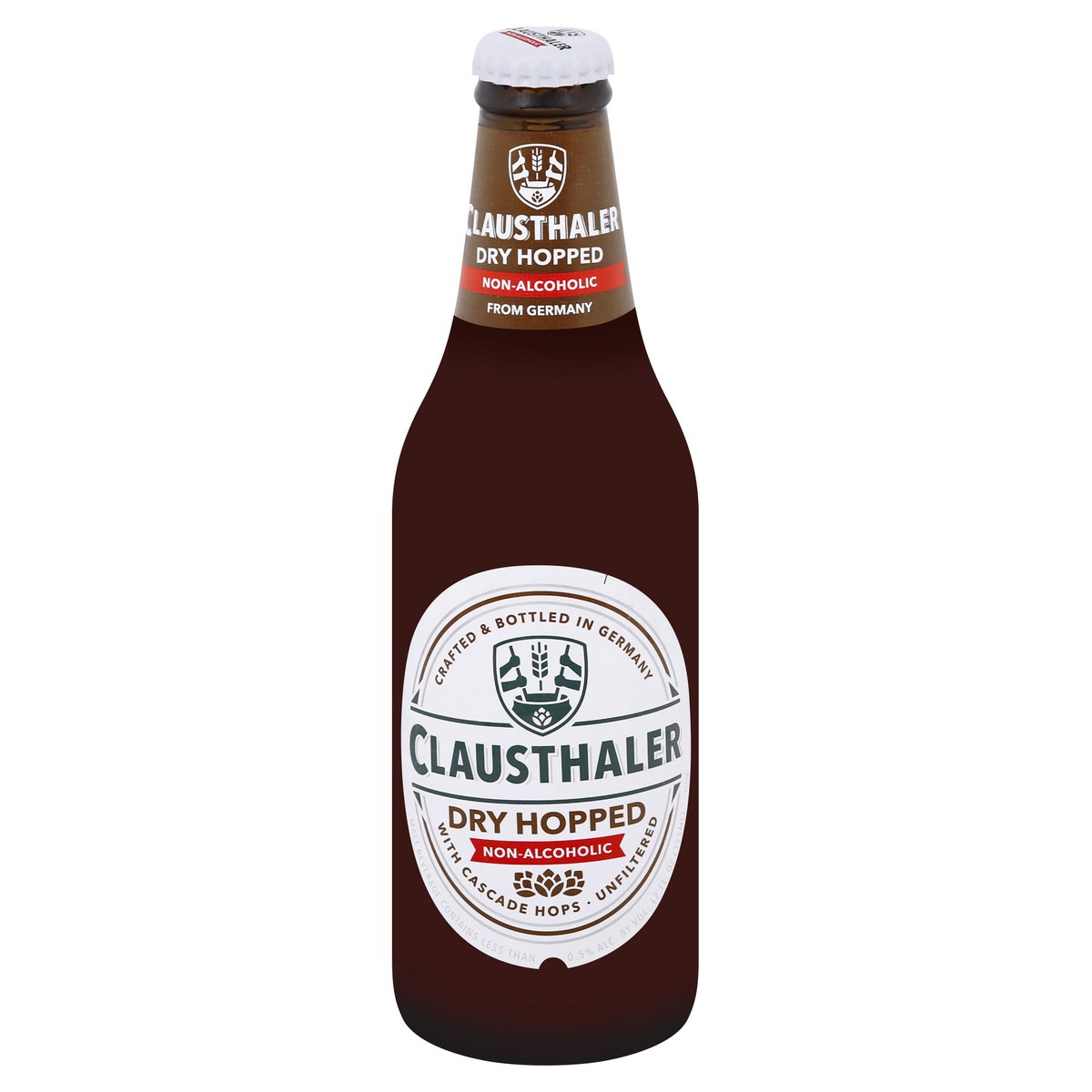 With cascade hops. A malt beverage dry hopped with Cascade hops. This Clausthaler is the world's first dry hopped malt beverage in its category. Brewed by the German pioneer of non-alcoholic malt beveā¦