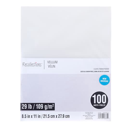 Buy the Clear 8.5" x 11" Vellum Paper by Recollections, 100 Sheets at Michaels. These clear vellum papers will make a wonderful addition to your craft supplies.. 8.5" x 11" (21.5cm x 27.9cm) . 29 lb. …