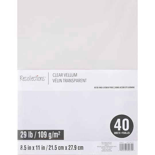 Shop for the Clear 8.5" x 11" Vellum Paper by Recollections, 40 Sheets at Michaels. These clear vellum sheets will make a wonderful addition to your craft supplies. Clear . 8.5" x 11" (21.5cm x 27.9cm…