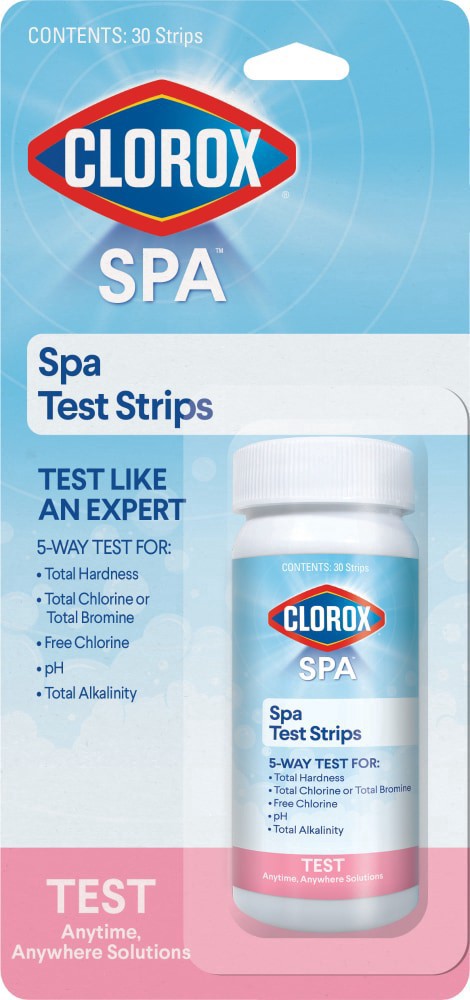 5-Way Test Strip to balance spa water. Test for: Free Chlorine, total chlorine/bromine, pH, Total Alkalinity and Total Hardness. Contains 30 test strips.