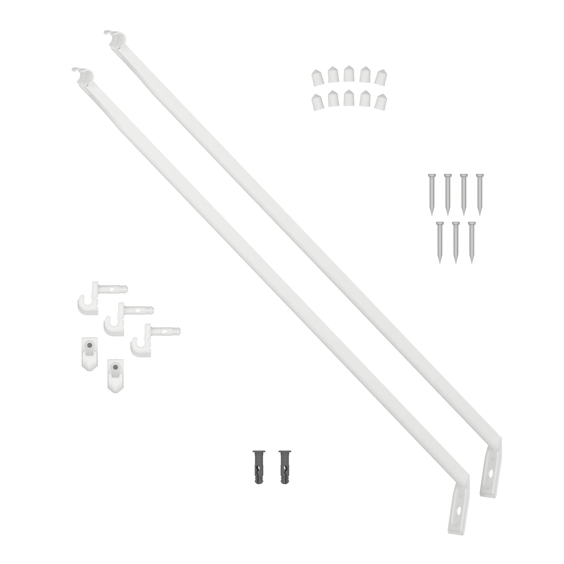 For 2 ft to 4 ft W wire shelving installations. Includes all shelf support hardware for the fixed mount system: support brackets, back wall clips, anchors/pins and shelf end caps. For use with 16-in D…