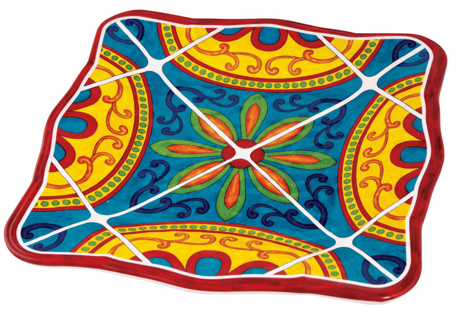 Cocinaware 9" Square Salad Plate, Red Mexican Tile