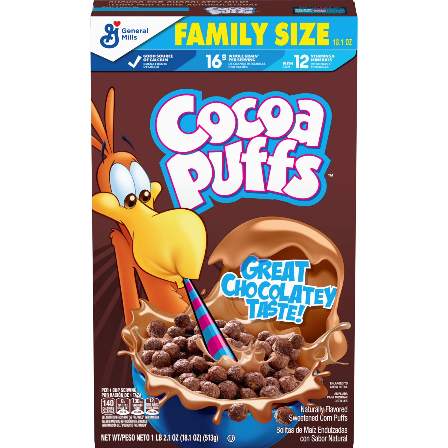 Cocoa Puffs, Chocolatey Breakfast Cereal, Made with Whole Grain, Family Size, 18.1 oz