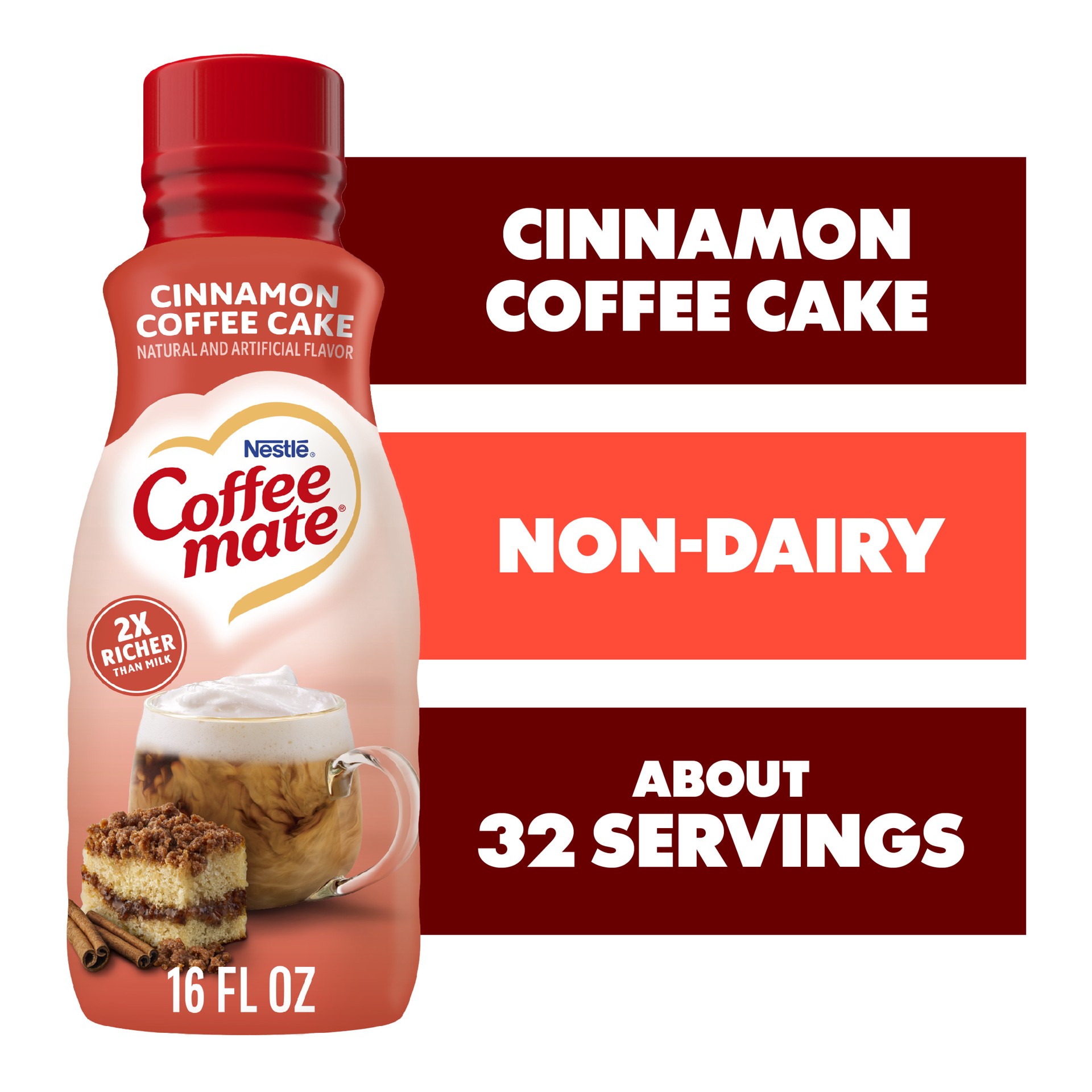 Ditch your boring coffee routine and indulge in Coffee mate Cinnamon Coffee Cake Flavored Coffee Creamer! You''re going to fall in love with our non-dairy coffee creamer, taking you from your early mo…