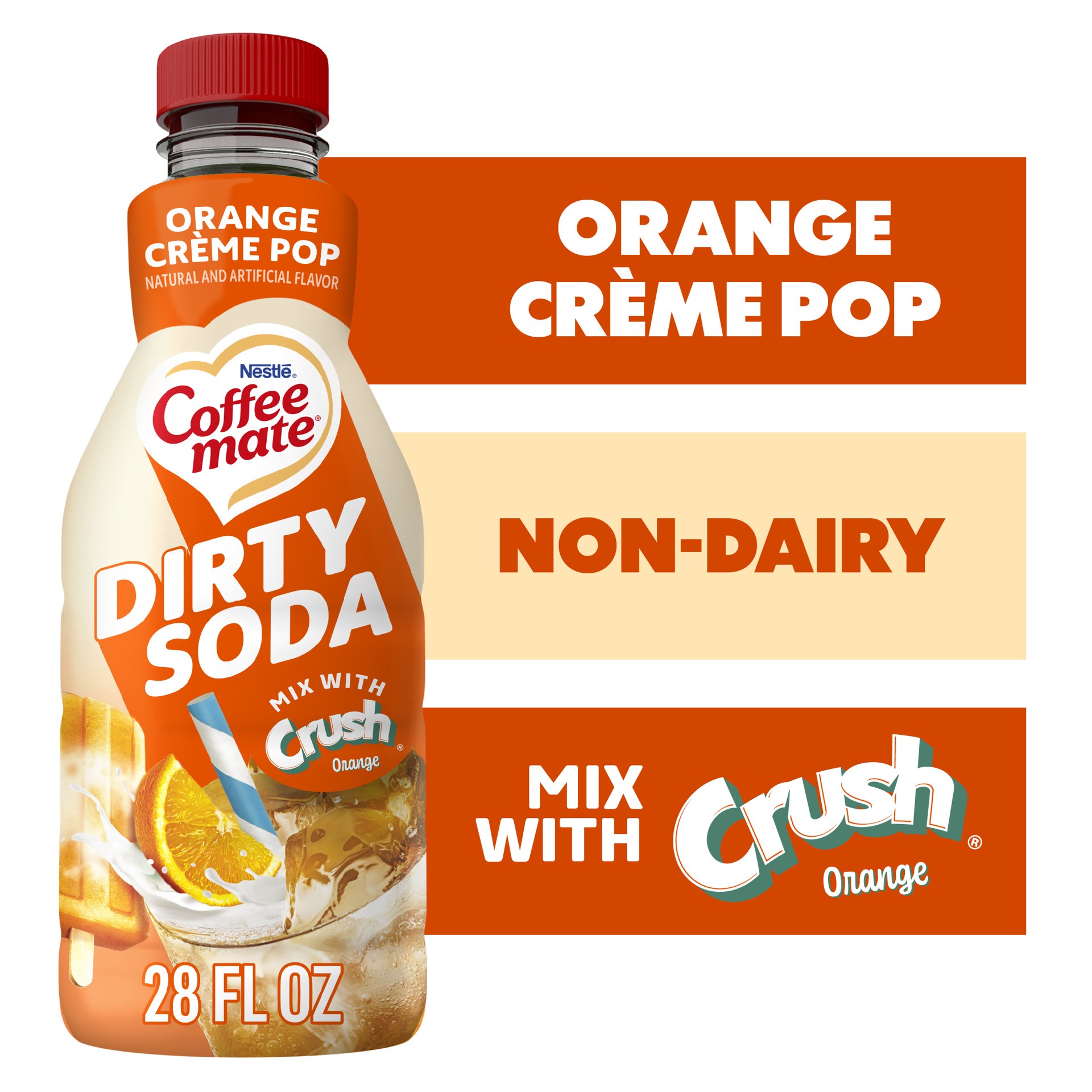 Ready to mix things up? We''re here to shake up your soda routine with Coffee mate Dirty Soda Creamer. This Orange Crème Pop flavored liquid creamer brings a twist to your favorite sodas—think Crush O…
