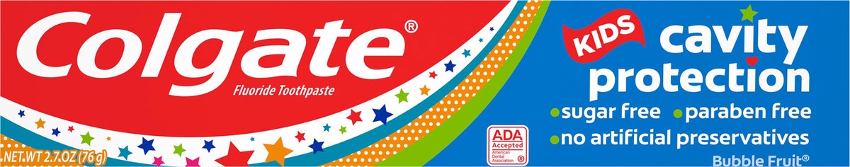 Misc: ADA Accepted. American Dental Association. Fights cavities. Clinically proven. Enamel safe. Fights cavities with clinically proven fluoride formula. Nice and gentle on tooth enamel. Bubble fruit…