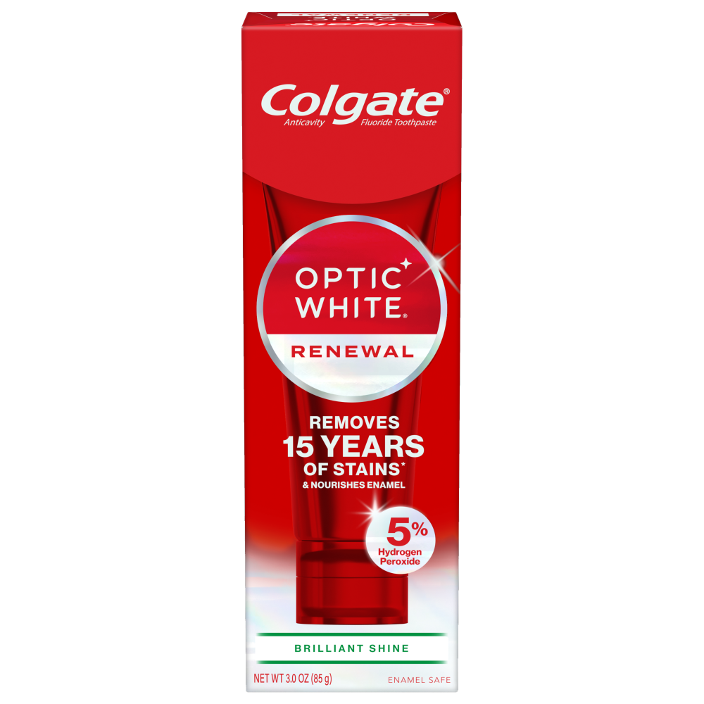 Welcome a brilliantly white smile with the Colgate Optic White Renewal Teeth Whitening Toothpaste. This whitening fluoride toothpaste removes 15 years of stains* and effectively removes tea, coffee, a…