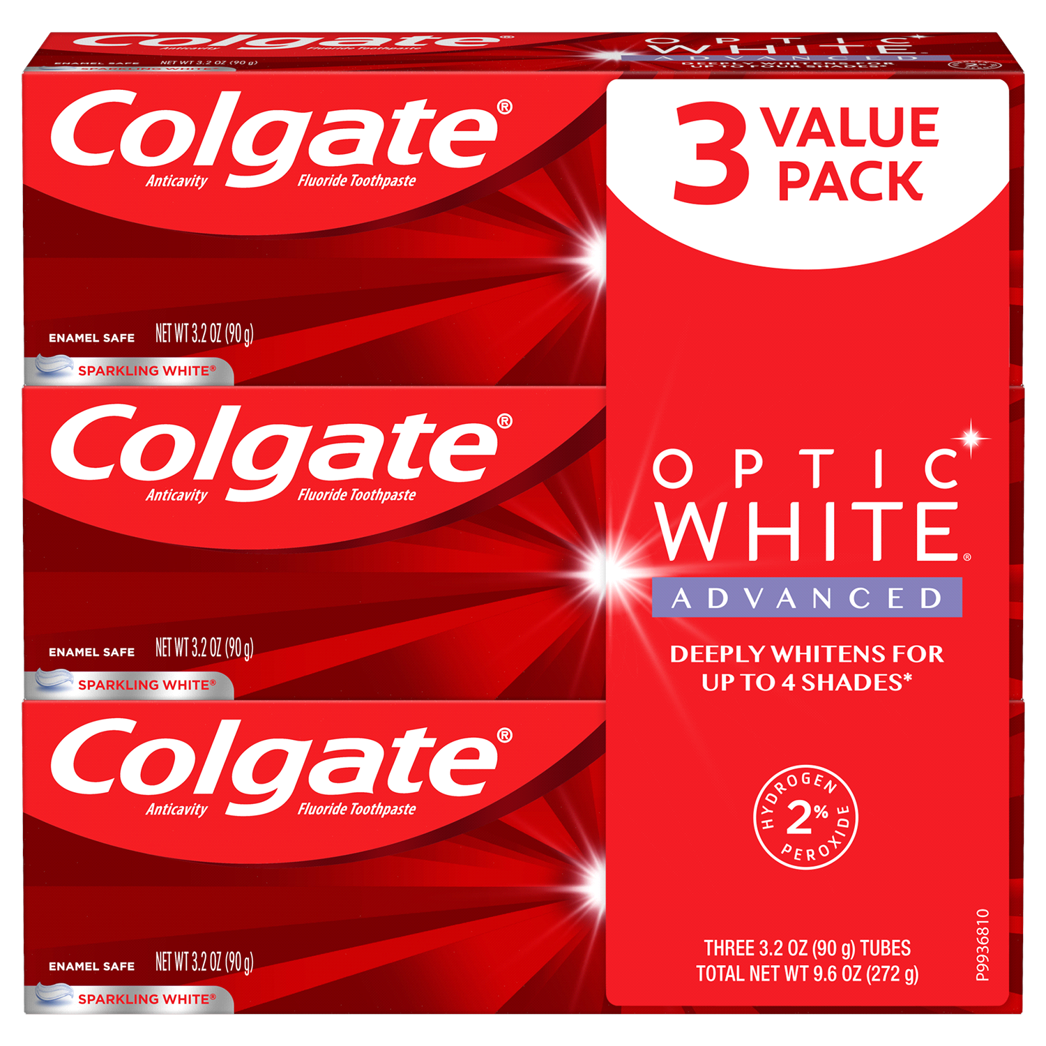 Colgate Optic White Advanced Hydrogen Peroxide Toothpaste Pk., Sparkling White