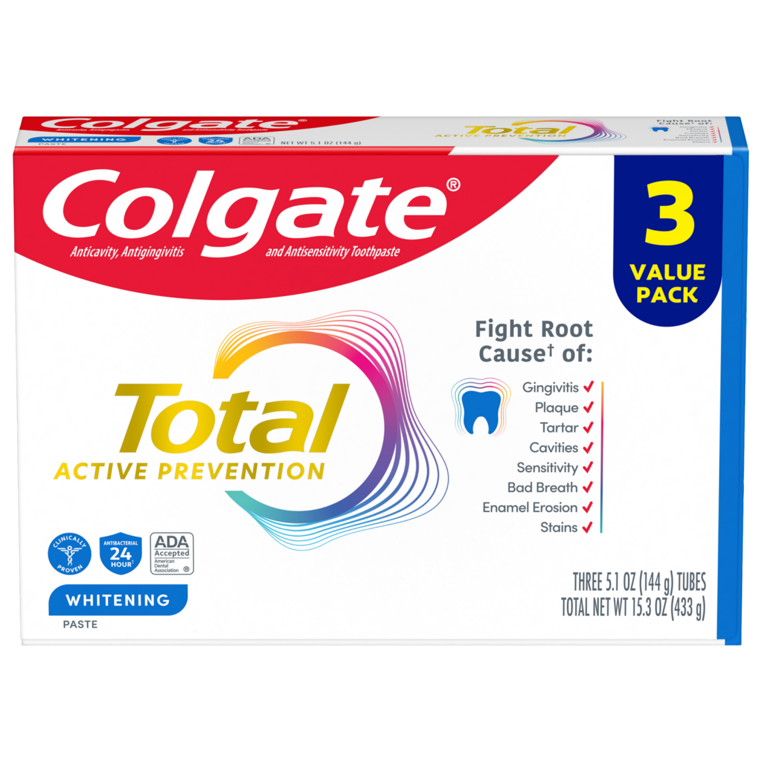 Colgate Total Active Prevention Whitening Toothpaste, Mint, 3 Pk., 5.1 Oz.