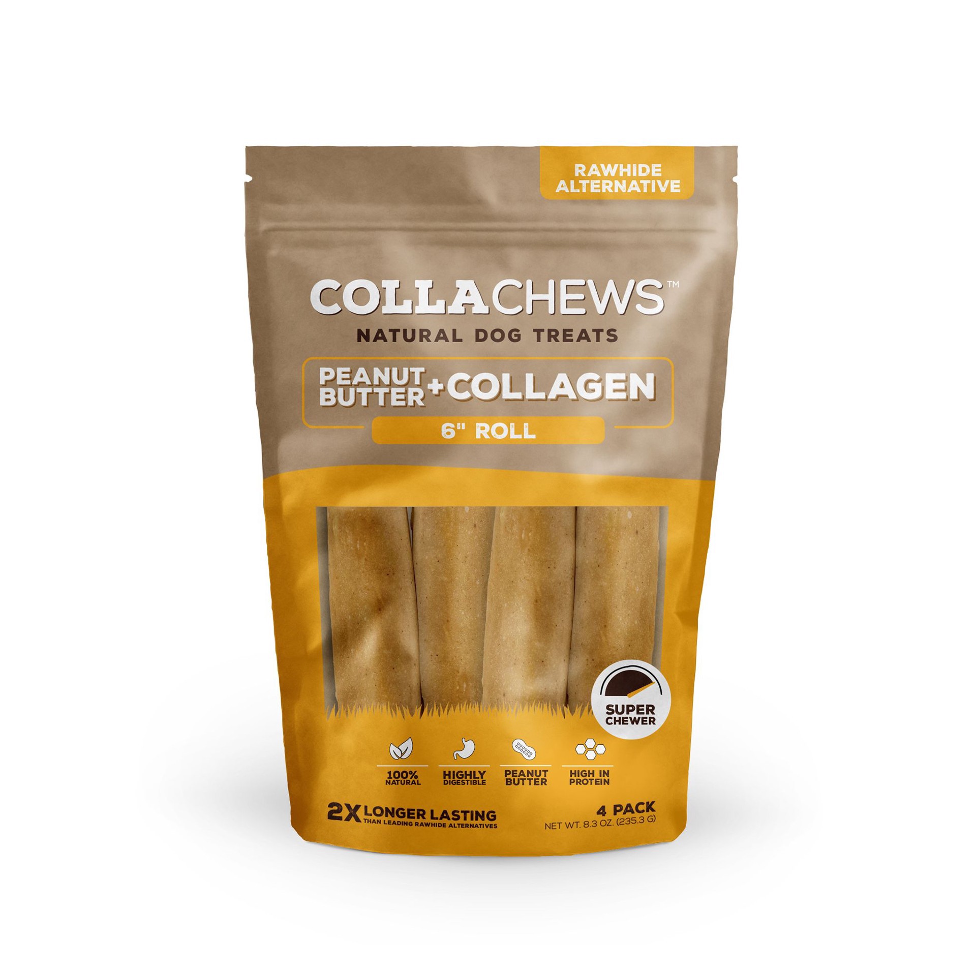 slide 1 of 1, Collachews 6In Pb Collagen Rolls, 4 ct