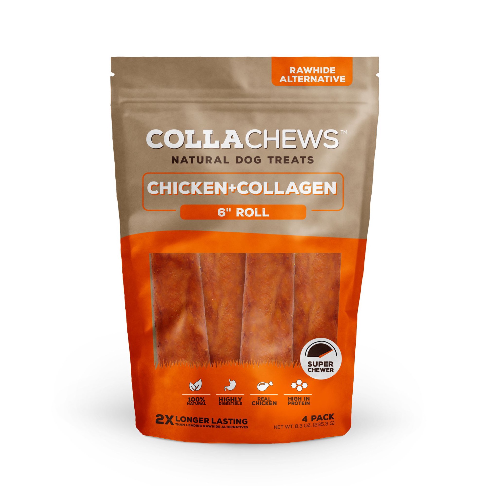 Collachews Beef + Collagen Rawhide Free 6" Roll Dog Treat - Chicken, 4 Count