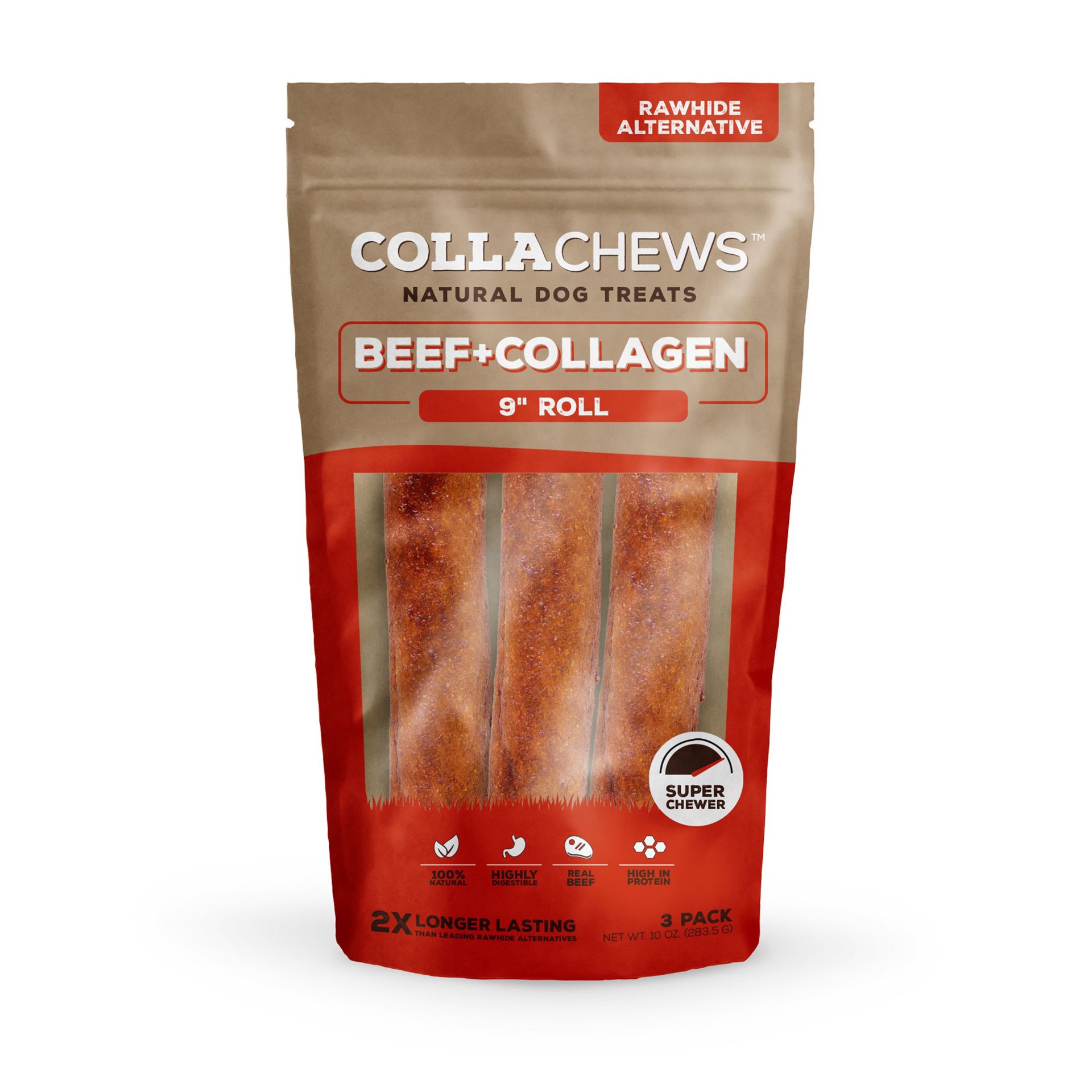 Collachews™ Beef + Collagen Rawhide Free 9" Roll Dog Treat - Beef, 3 Count